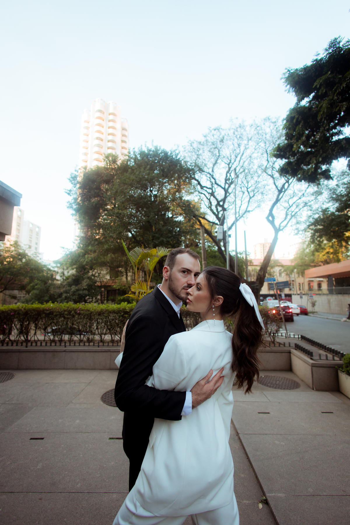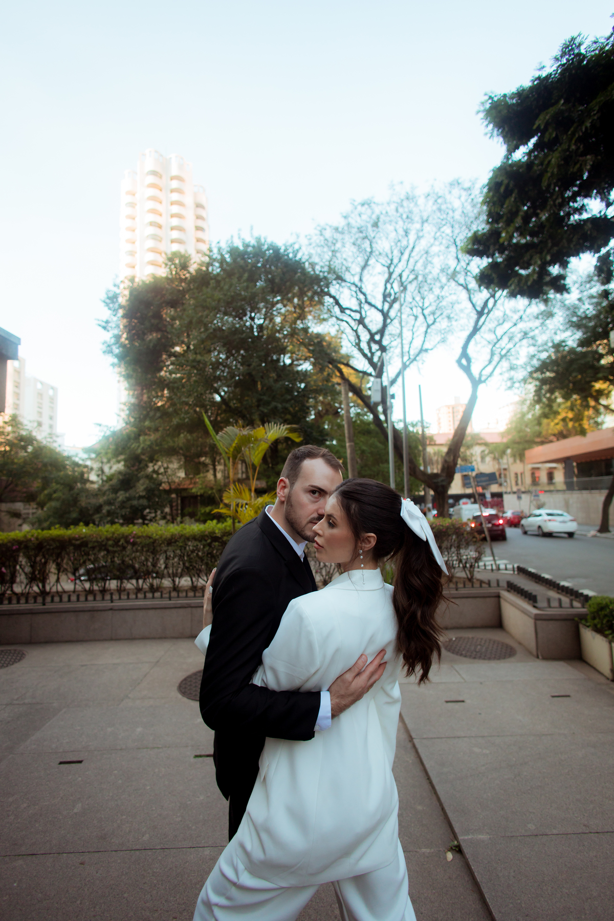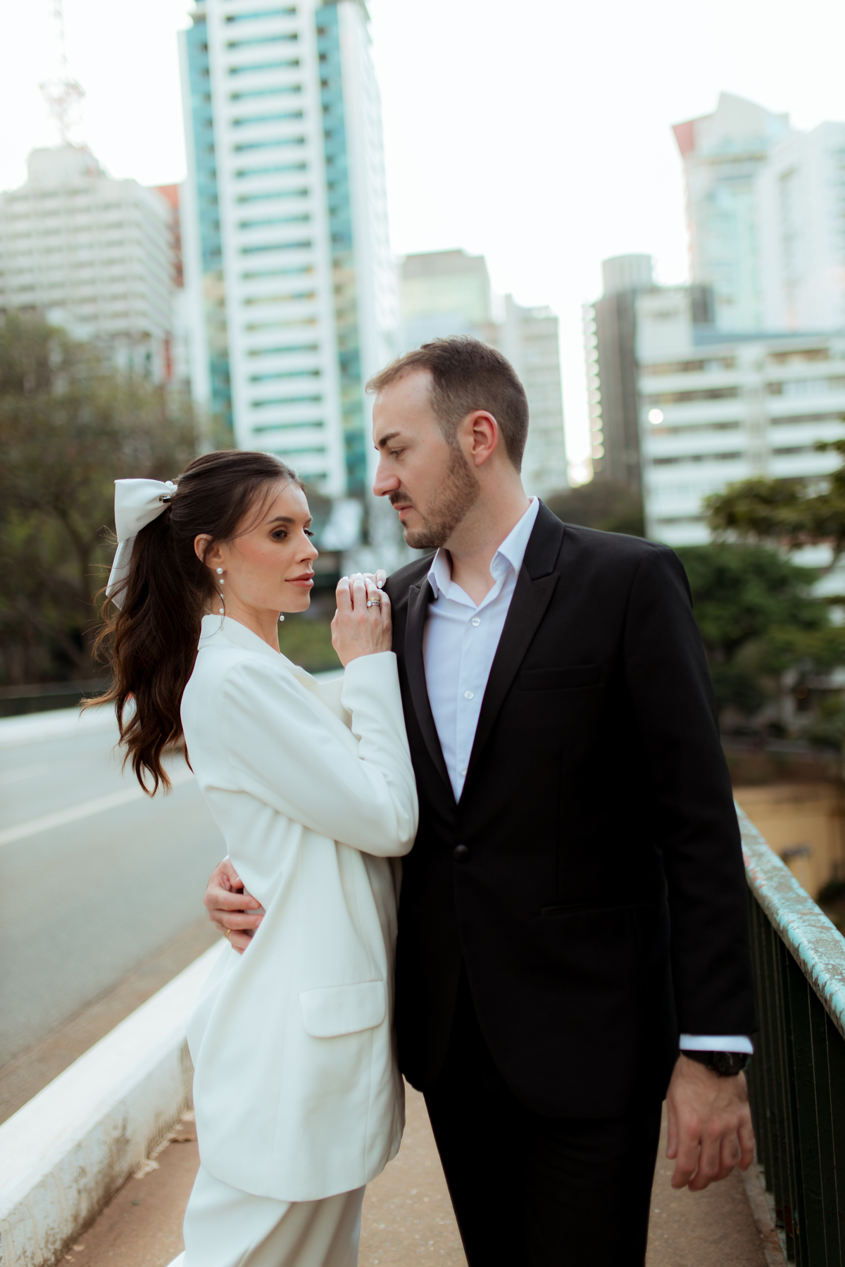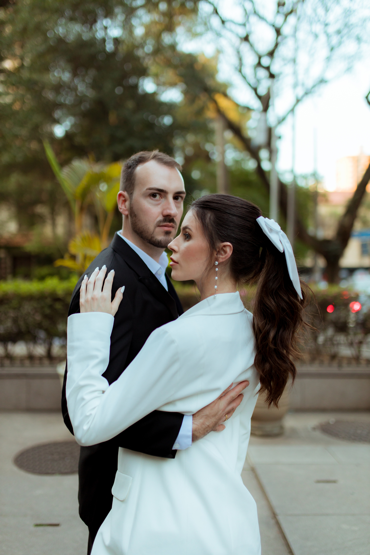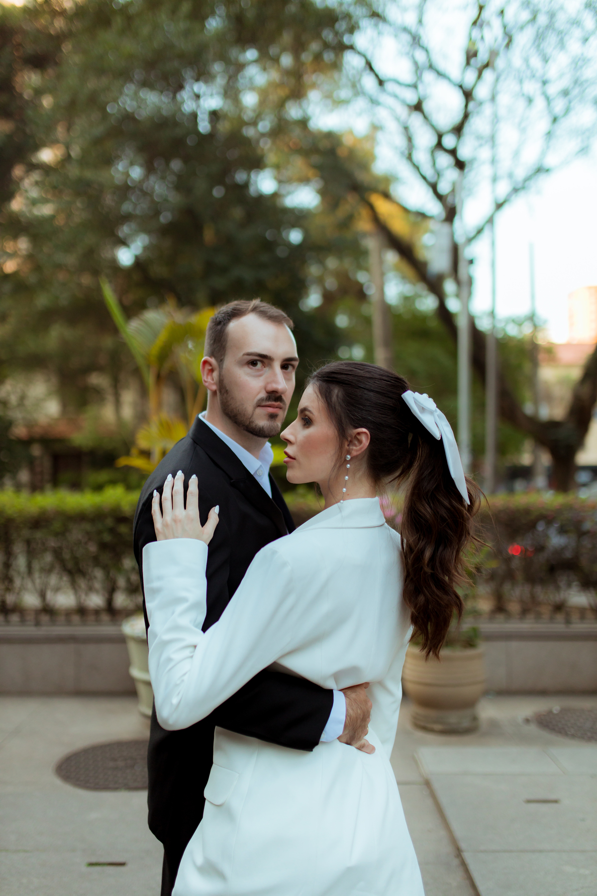 Essa tendência pode e deve ser usada nos pré-weddings com a presença de laços e roupas em tecidos estruturados.