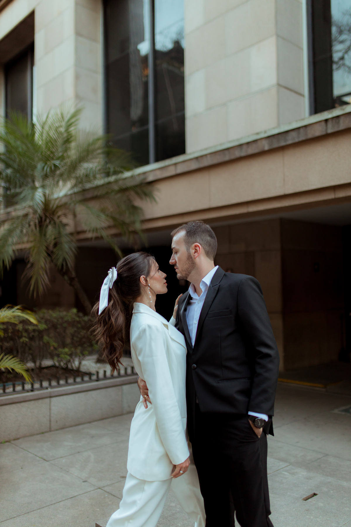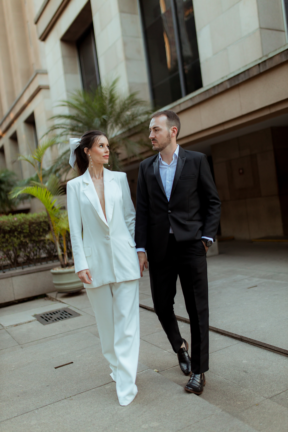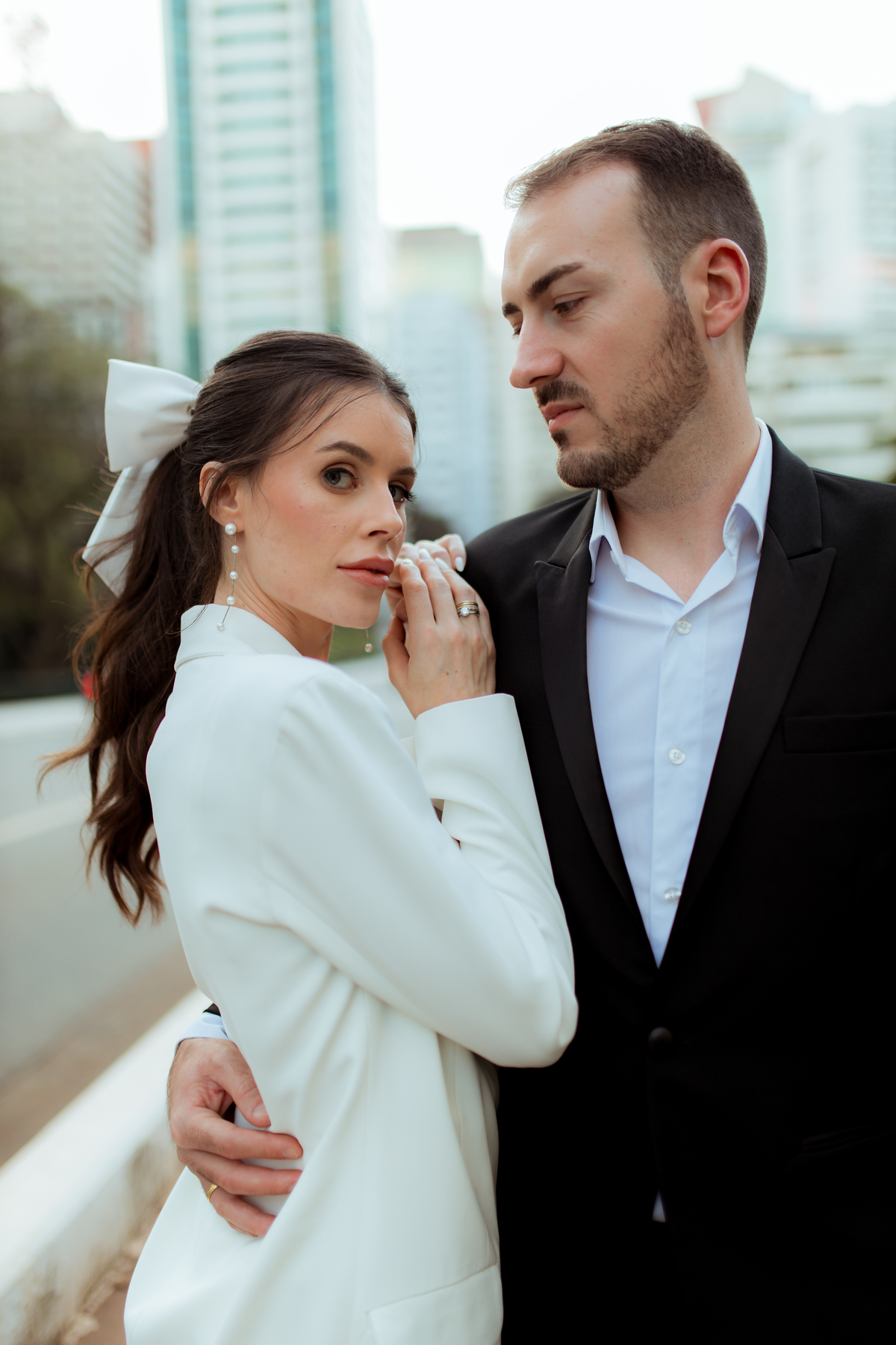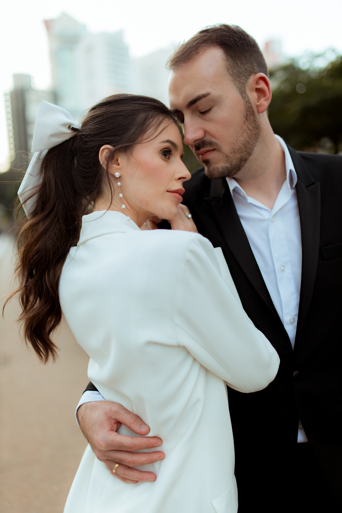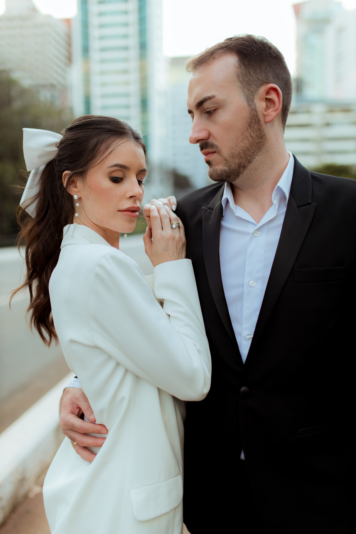 Essa tendência pode e deve ser usada nos pré-weddings com a presença de laços e roupas em tecidos estruturados.