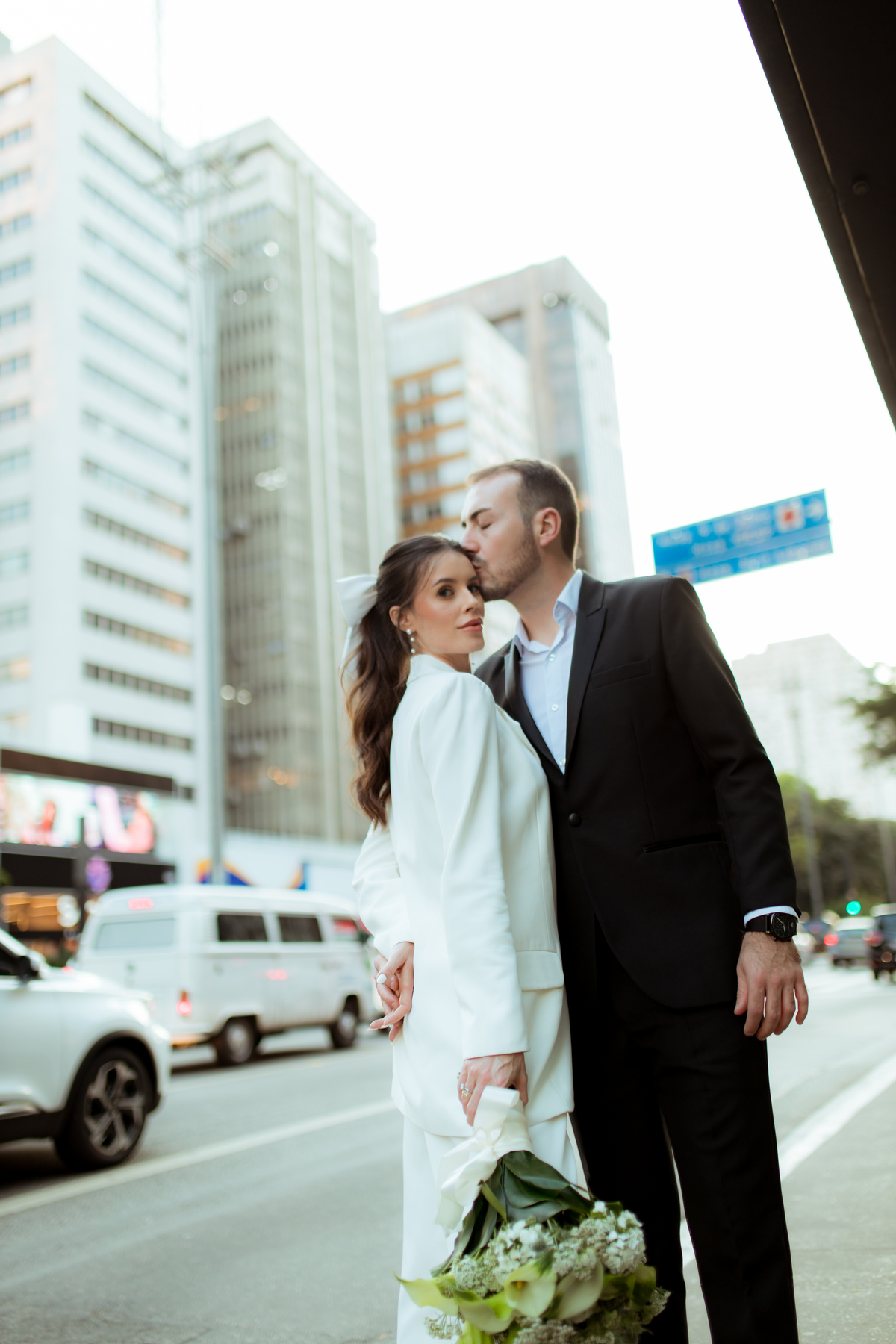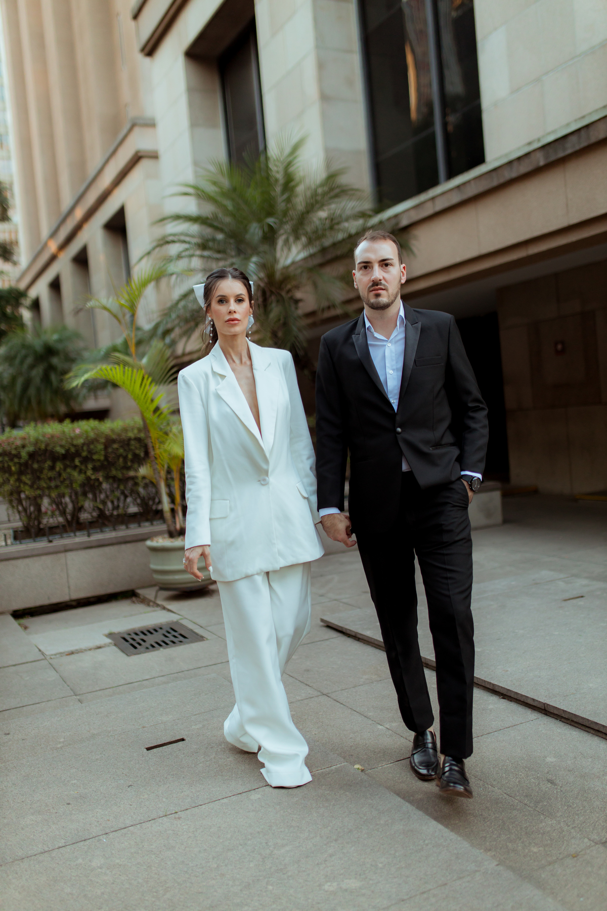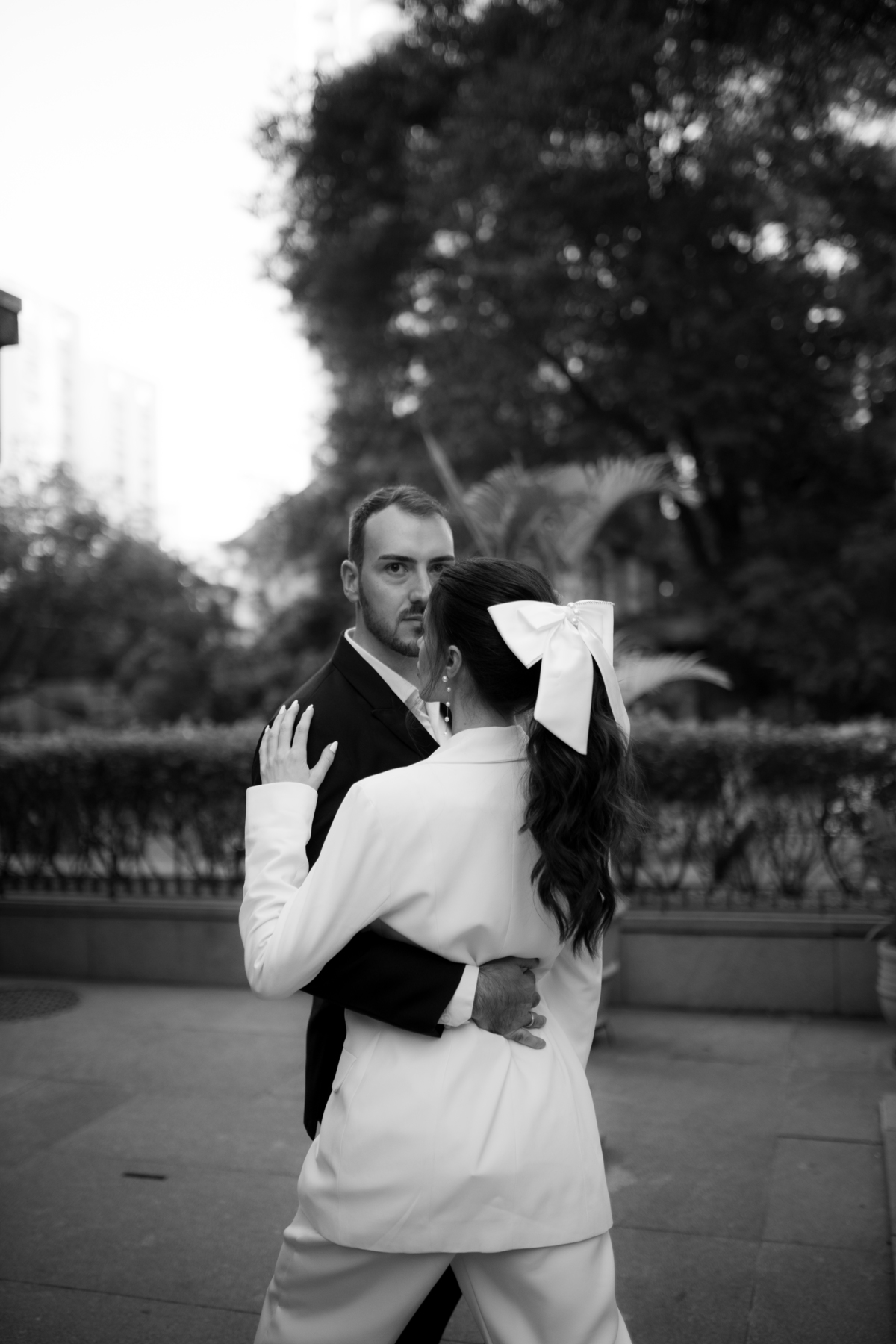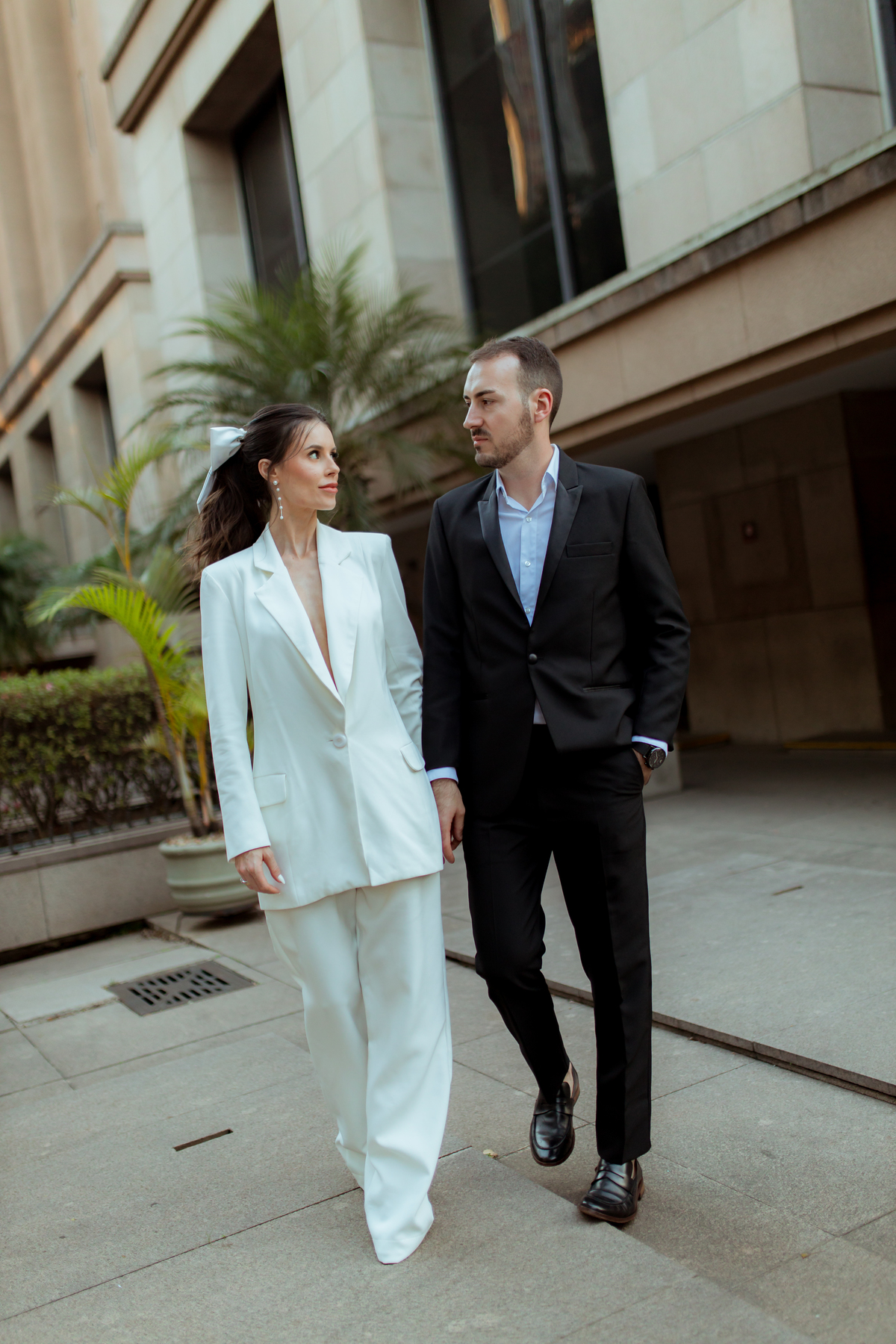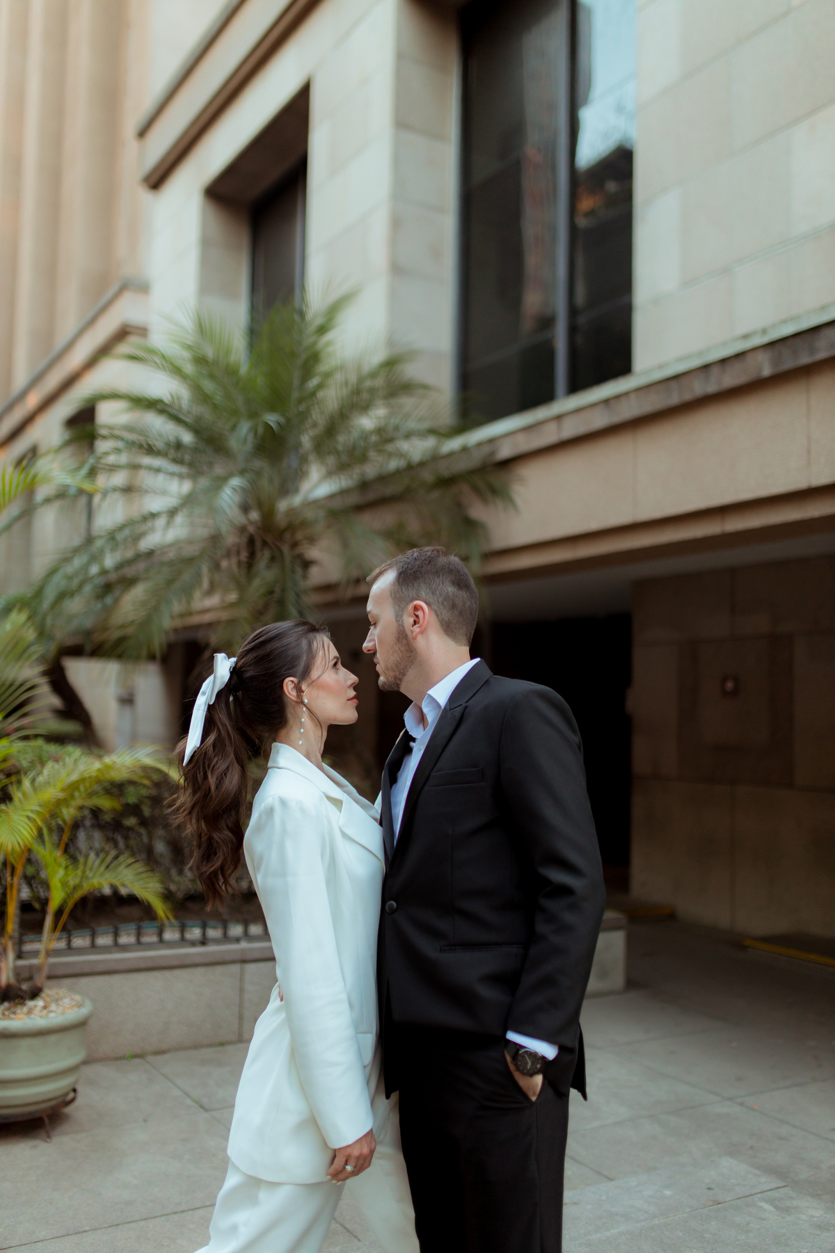 Essa tendência pode e deve ser usada nos pré-weddings com a presença de laços e roupas em tecidos estruturados.